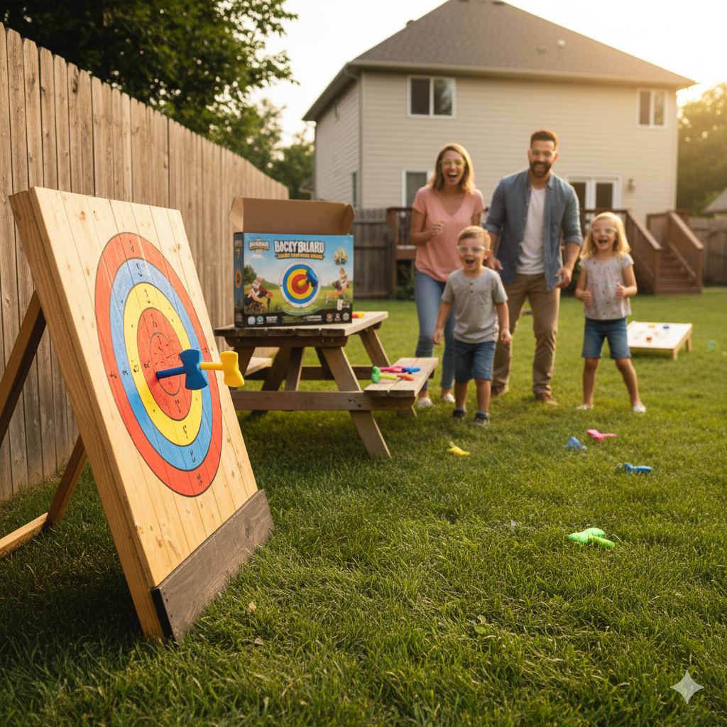 Family Axe Throwing Game for Backyard Fun | Safe Bristle Target Set with 4 Axes & 4 Darts for Kids & Adults | Lightweight & Portable for Carnival, Camping, Party and Indoor/Outdoor Games